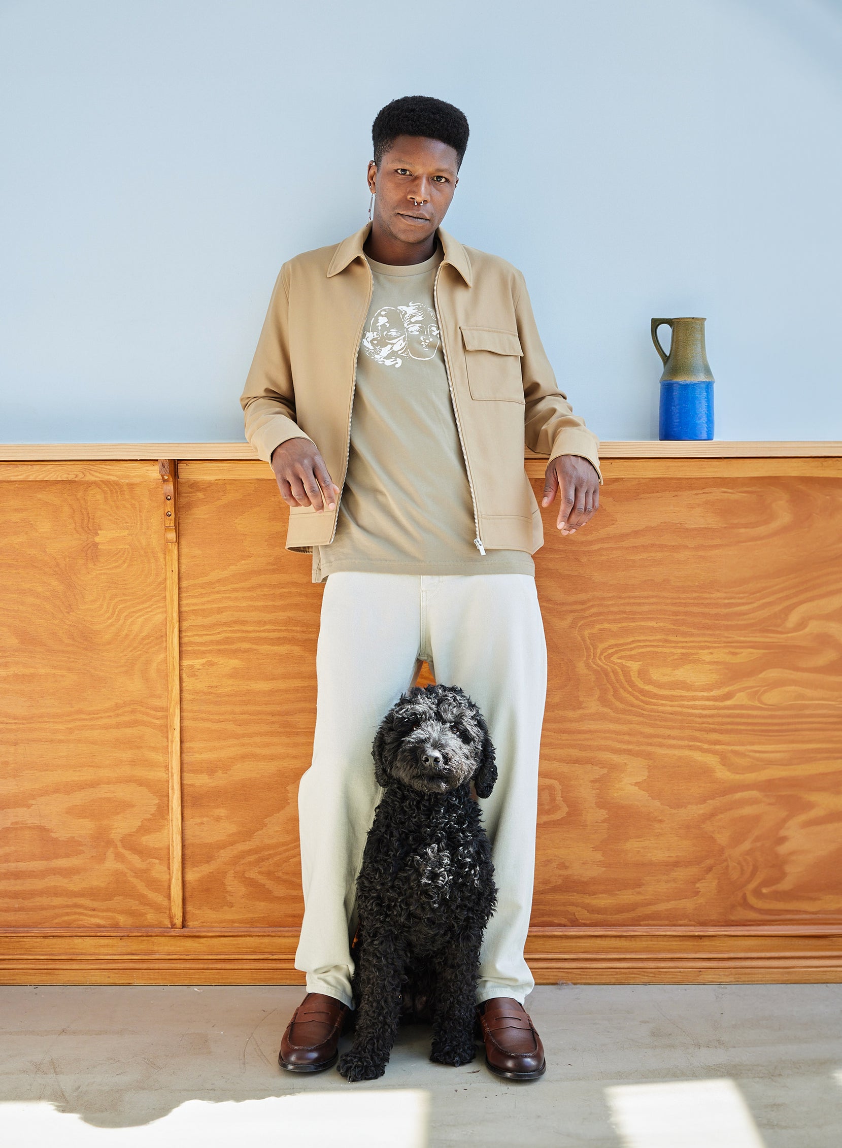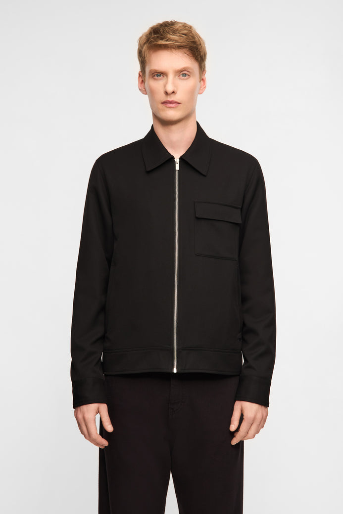 Identidad: Logotipo bordado a tono en el pecho para una marca discreta.