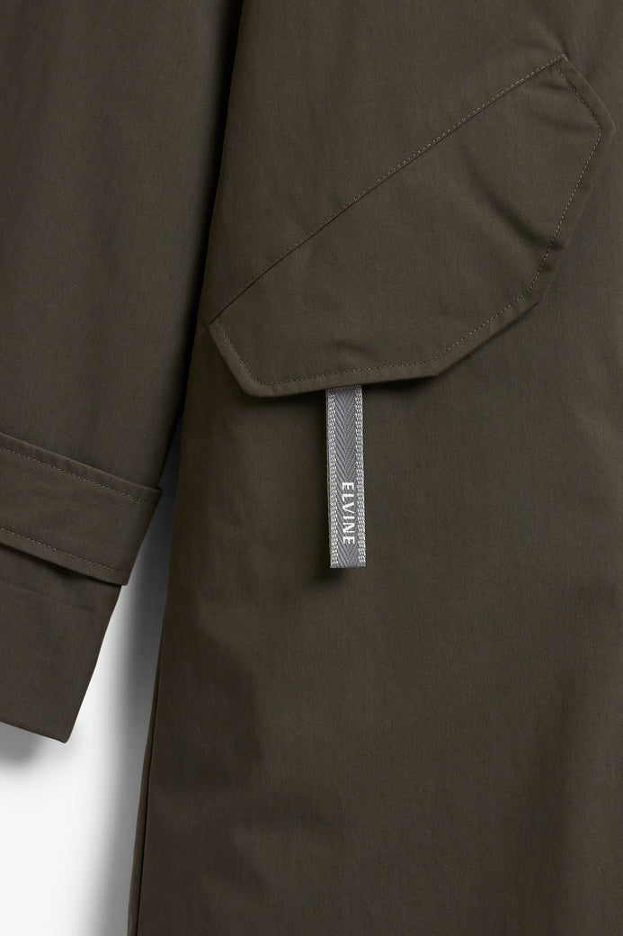 Confeccionada con tejido resistente al agua; debido a su confección, la prenda no es totalmente impermeable