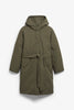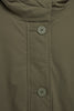 Costuras esenciales en capucha, hombros y sisas selladas con cinta impermeable.