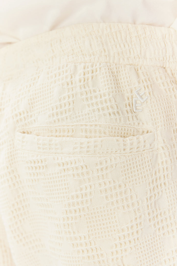Redefine tu tiempo de descanso con el pantalón Sunflower Waffle. Confeccionado íntegramente en algodón premium, su característica trama de nido de abeja profundo no solo crea una estética visual rica y orgánica, sino que ofrece una elasticidad natural y una transpirabilidad excepcionales. Un diseño pensado para quienes buscan la máxima suavidad con una estructura que mantiene su forma.