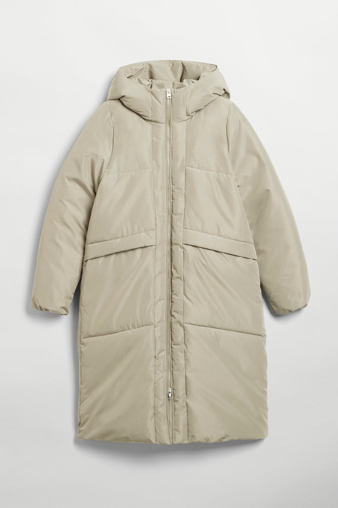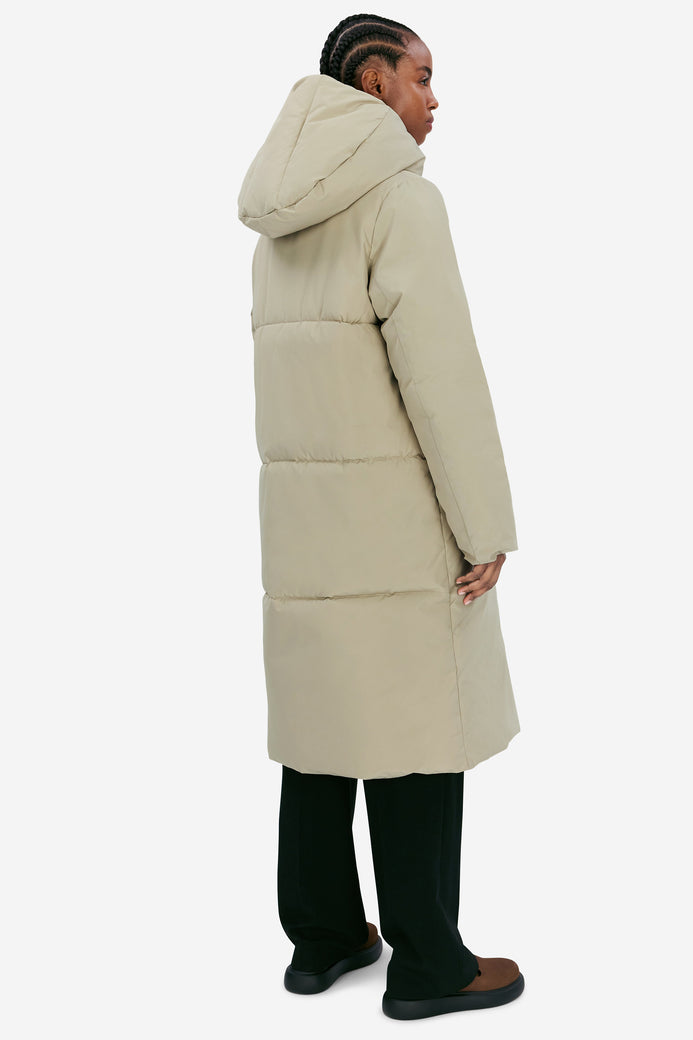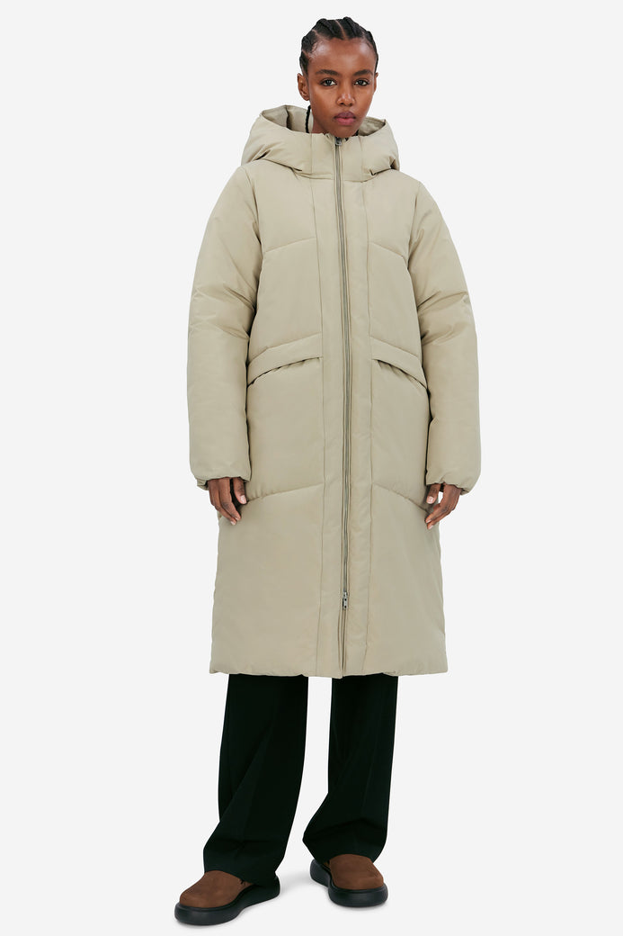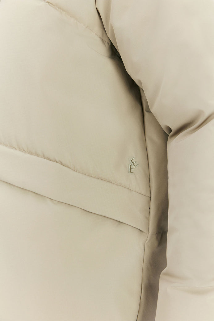 Fabricada con un tejido resistente al agua, debido a su confección la prenda no es totalmente impermeable.