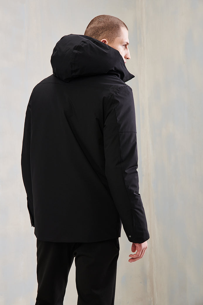 - Bolsillo de solapa en el pecho con cremallera oculta