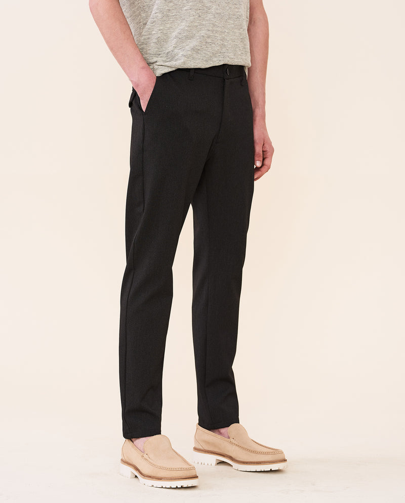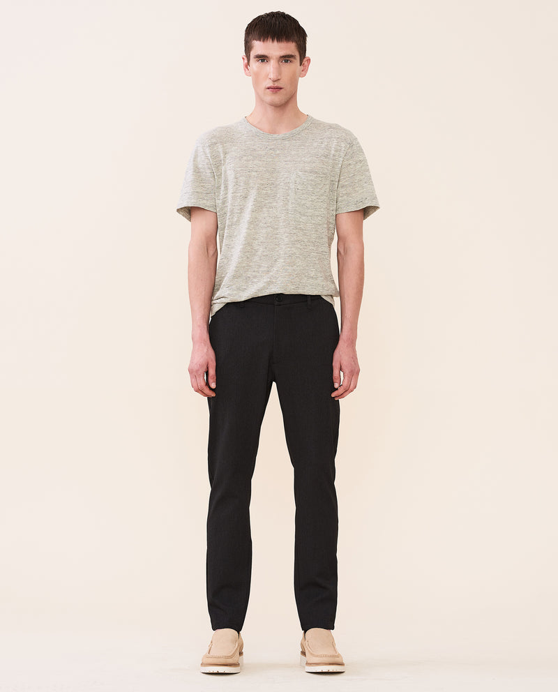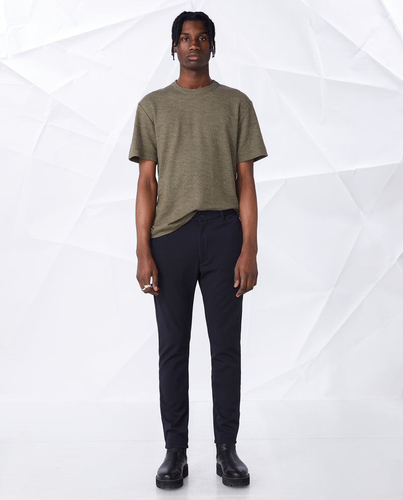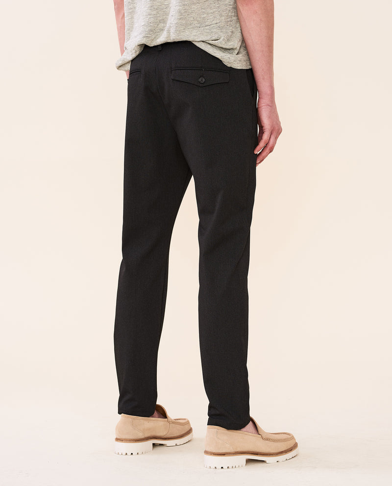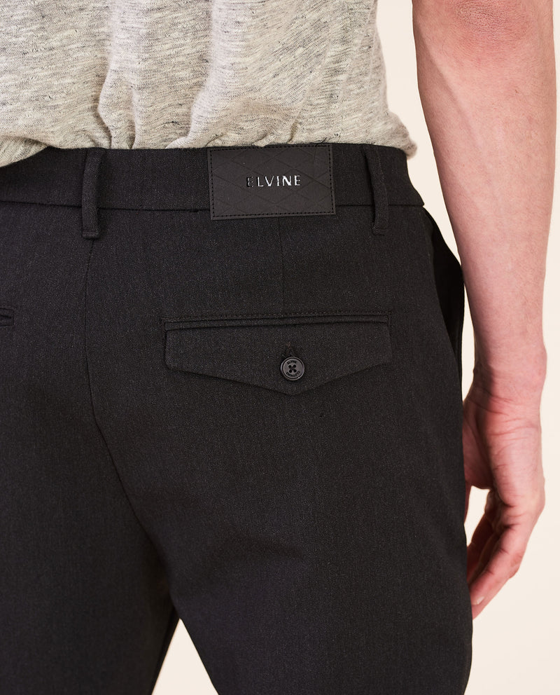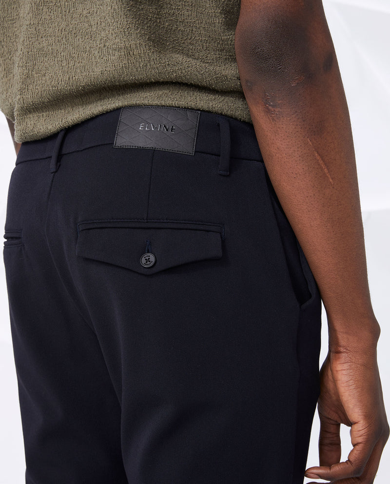 Crimson es un magnífico pantalón inspirado en dos clásicos chinos de Elvine: Slimson y Cropson. Hemos tomado lo mejor de cada uno para conseguir un modelo total, con corte ajustado, costuras ocultas, entrepierna ligeramente caída y entallado desde la rodilla hasta el dobladillo. Por cierto, luce igual de bien tanto enrollado como sin enrollar, y lleva dos bolsillos viveados con botones en la parte trasera, uno con solapa decorativa.