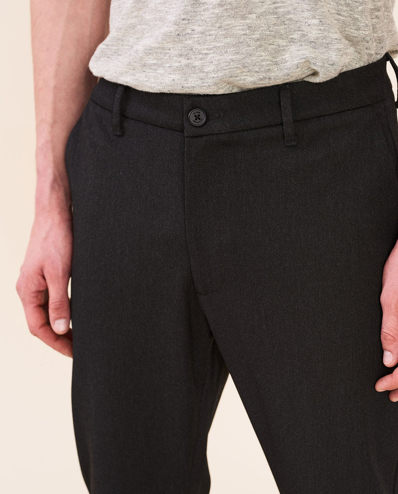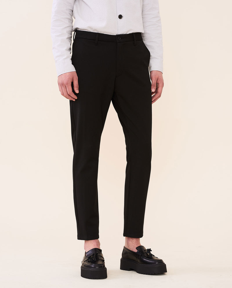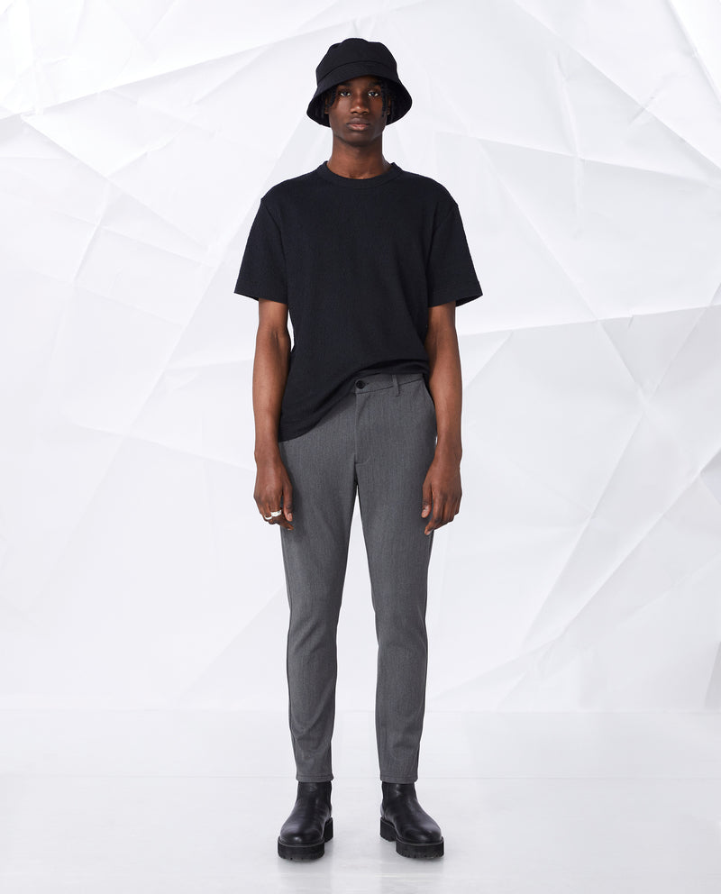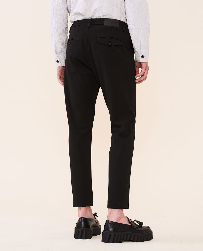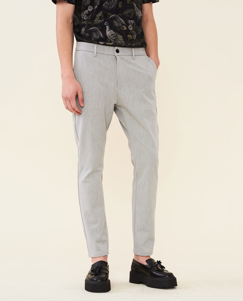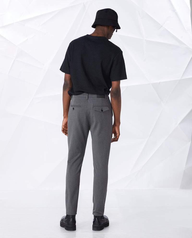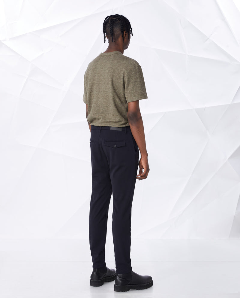 • Corte ajustado, entrepierna ligeramente caída y en forma de cono desde la rodilla hasta el dobladillo