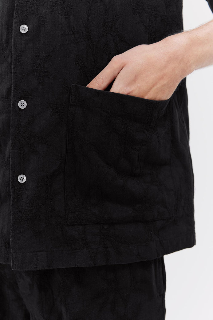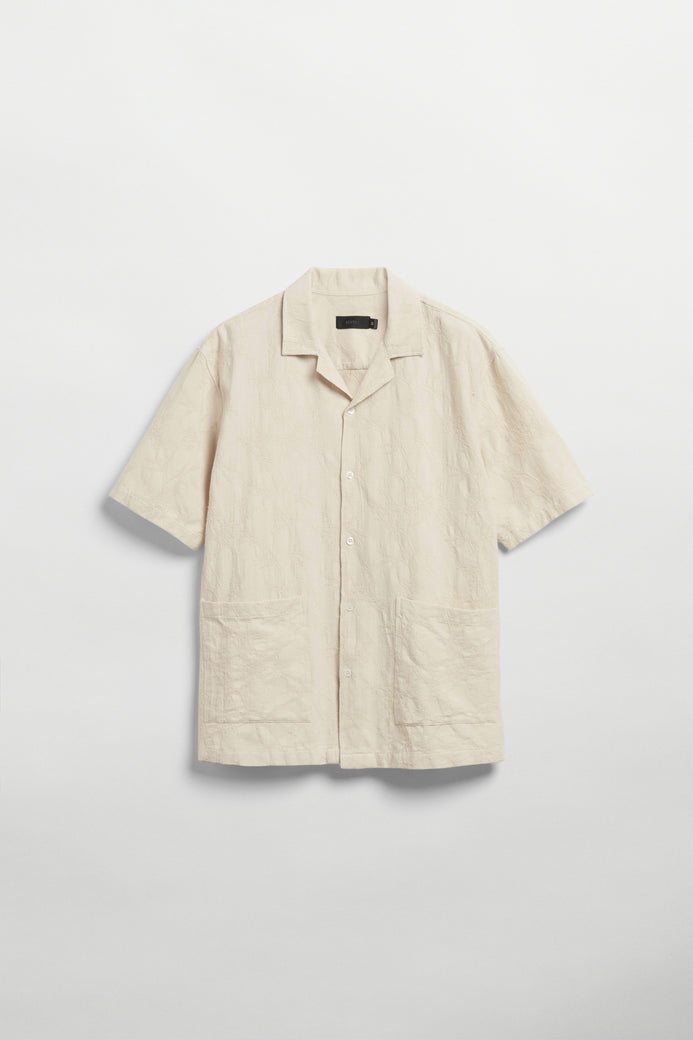 Wince es una camisa de manga corta confeccionada con tejido Cotton Meadow. El material es un jacquard tonal, una obra de arte que combina la transpirabilidad del algodón con un patrón de textura rica. Los detalles incluyen un cuello alto y dos bolsillos grandes inspirados en una chaqueta. Use Wince sola o combínela con los pantalones cortos Ryan para un conjunto elegante de verano.