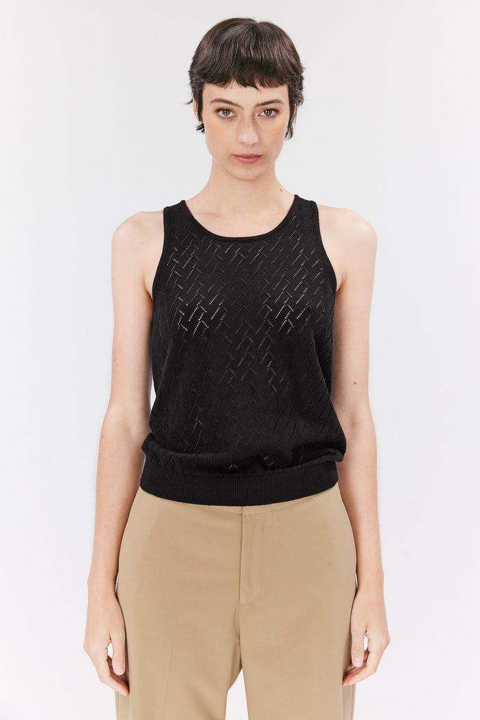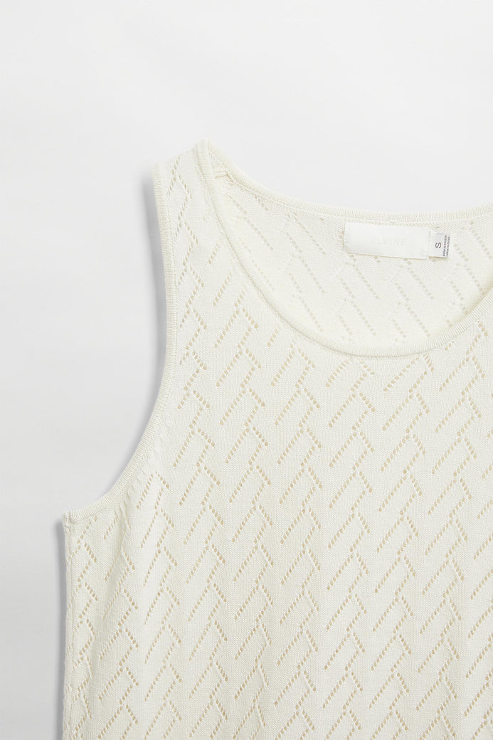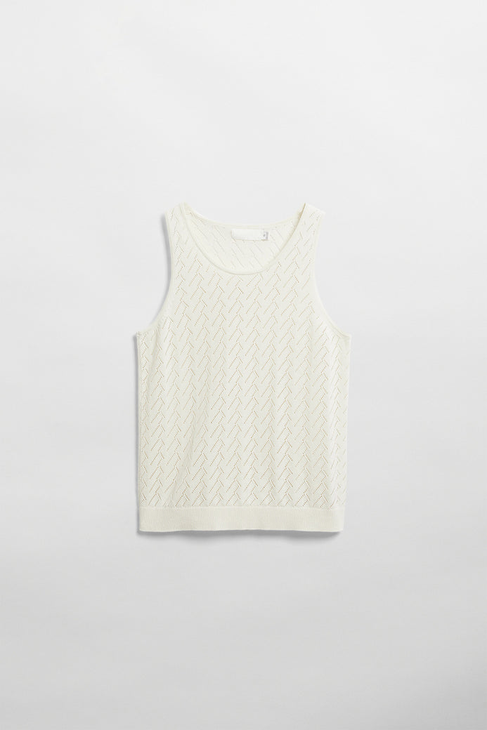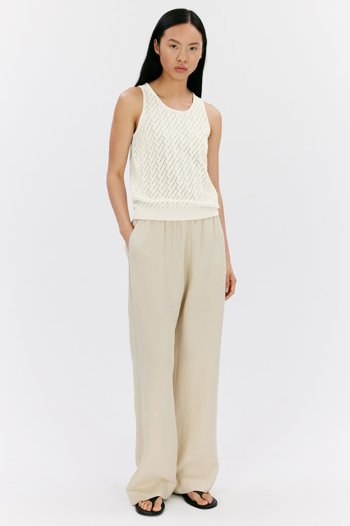 Debby es una blusa de punto de verano confeccionada con tela Cotton Lin Mix. El material tiene una sensación de sequedad al tacto que personifica tanto el lujo como la practicidad, combinando la suavidad del algodón con la durabilidad del lino. Los detalles incluyen un diseño de punto pointelle y dobladillo acanalado. Utilice Debby sola o póngala sobre su traje de baño para lograr un estilo veraniego fresco.