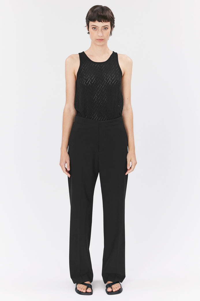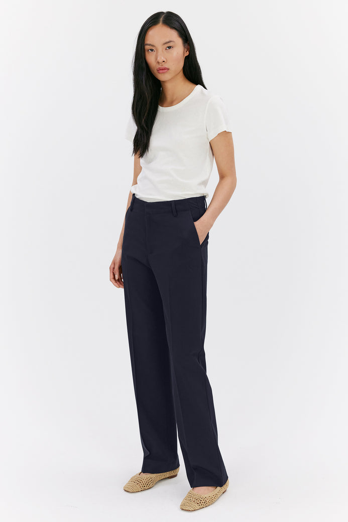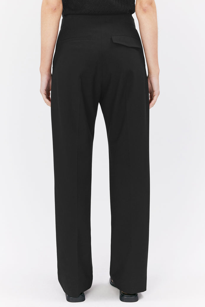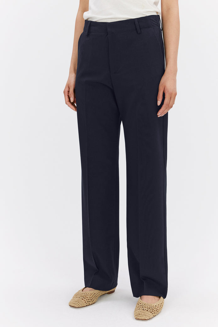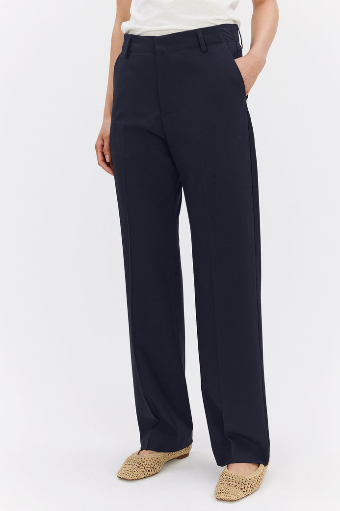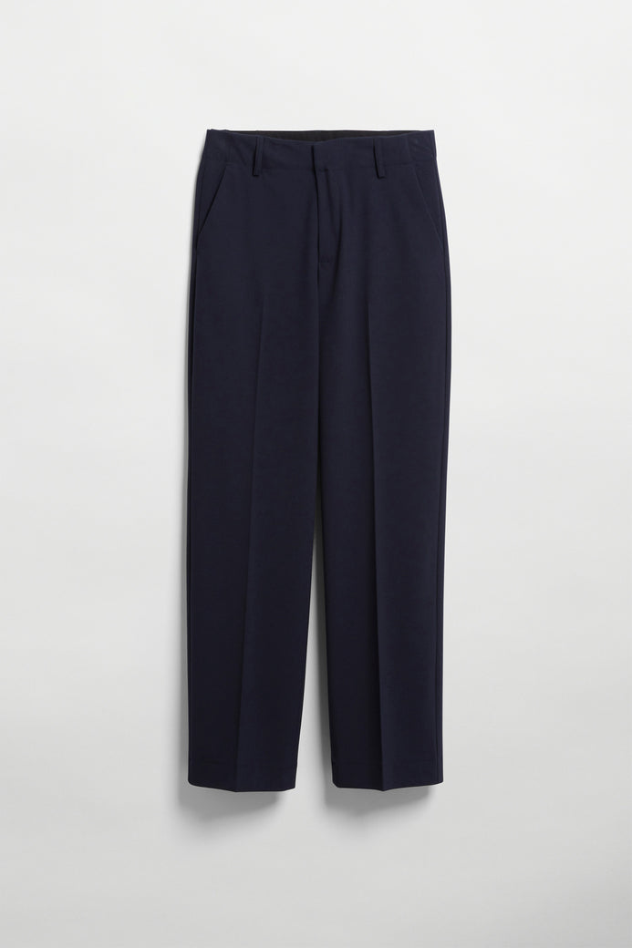 Lilja es un pantalón amplio y largo con corte formal, ideal para el trabajo diario y por ello fácil de planchar.