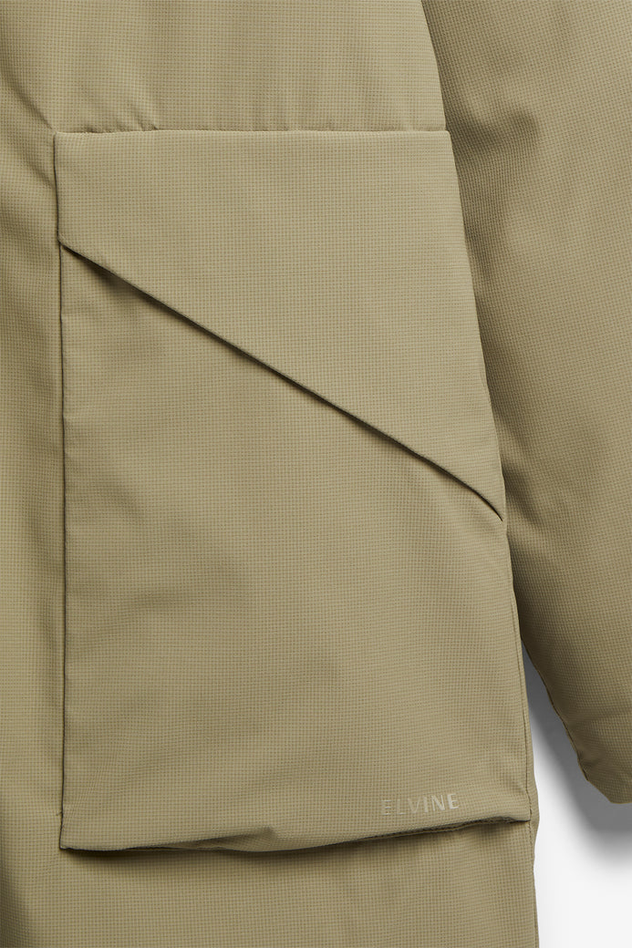 Confeccionada con tejido resistente al agua; debido a su confección, la prenda no es totalmente impermeable