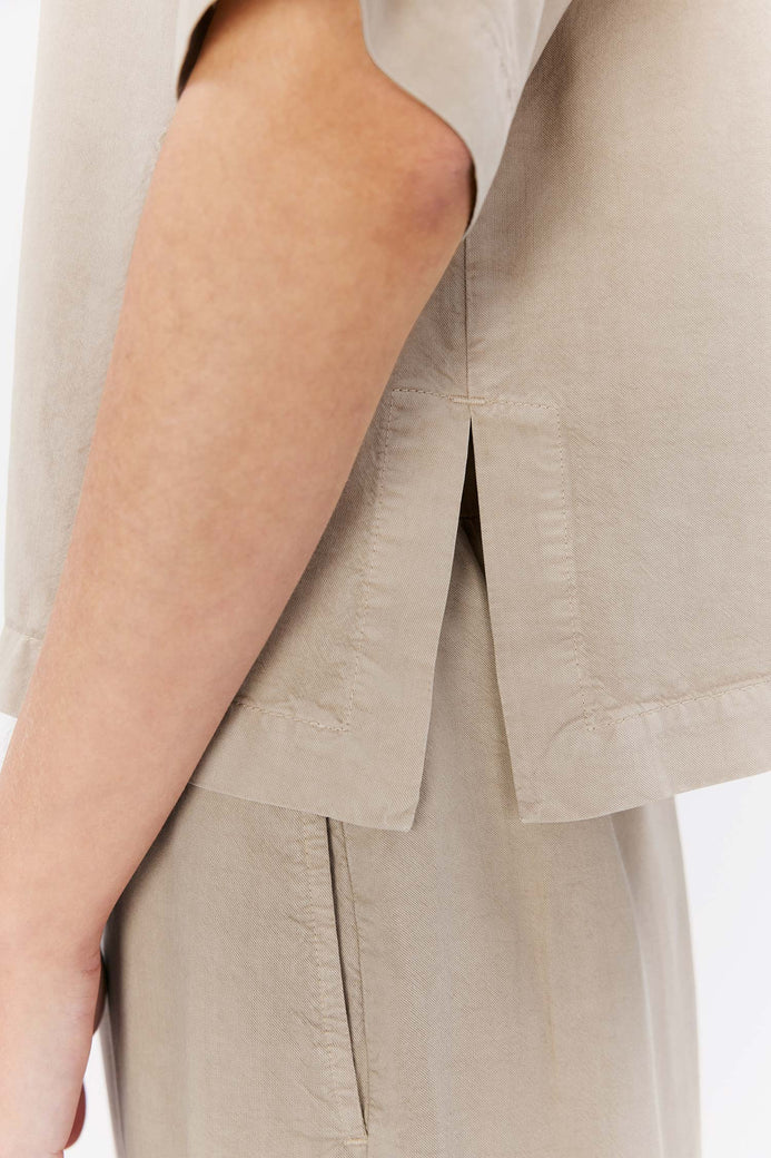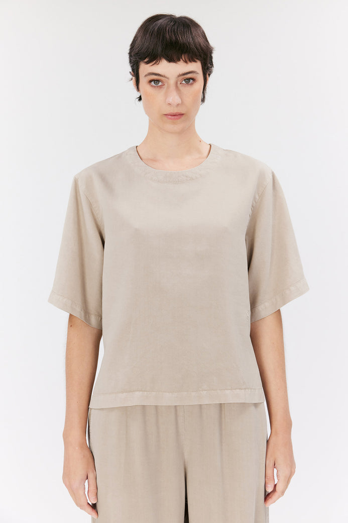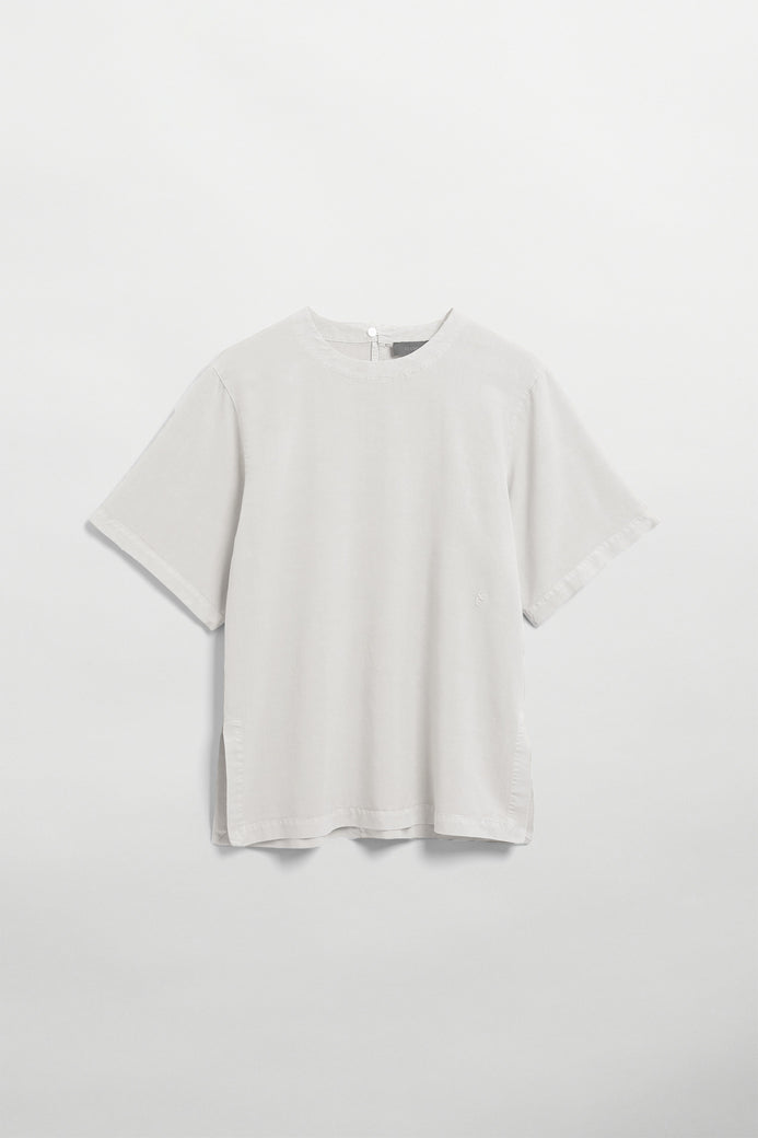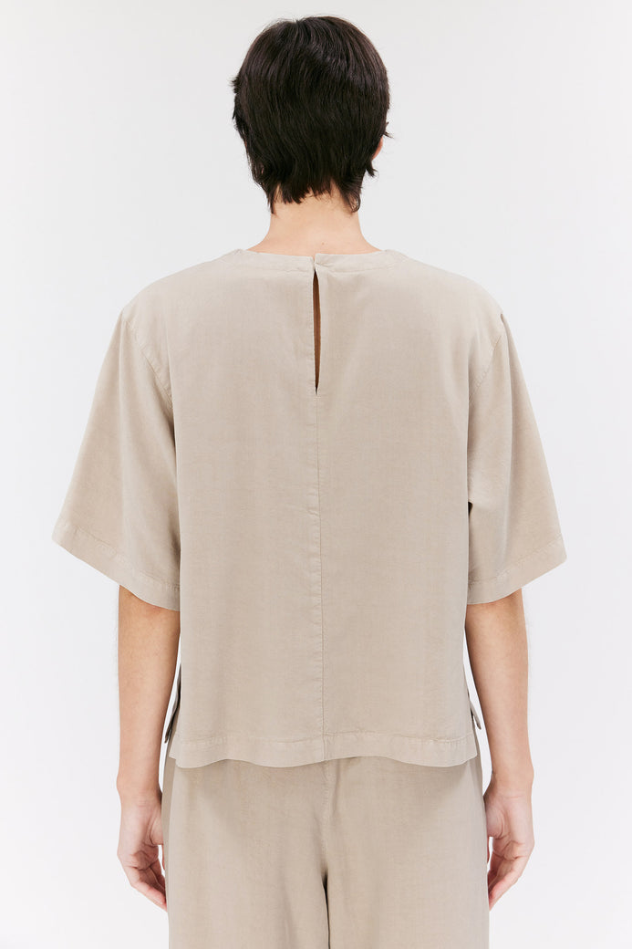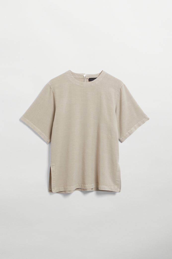 Eliana es una blusa confeccionada con tejido de lyocell teñido en prenda. El material está elaborado con fibras largas que aportan durabilidad adicional y una calidad uniforme y fina a la prenda. Los detalles incluyen aberturas en la costura lateral, cuello redondo, mangas relajadas, una abertura en forma de cerradura en la parte posterior y un bordado del símbolo EE. Utilice Eliana para paseos al atardecer que se convierten en conversaciones nocturnas.