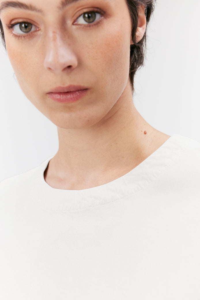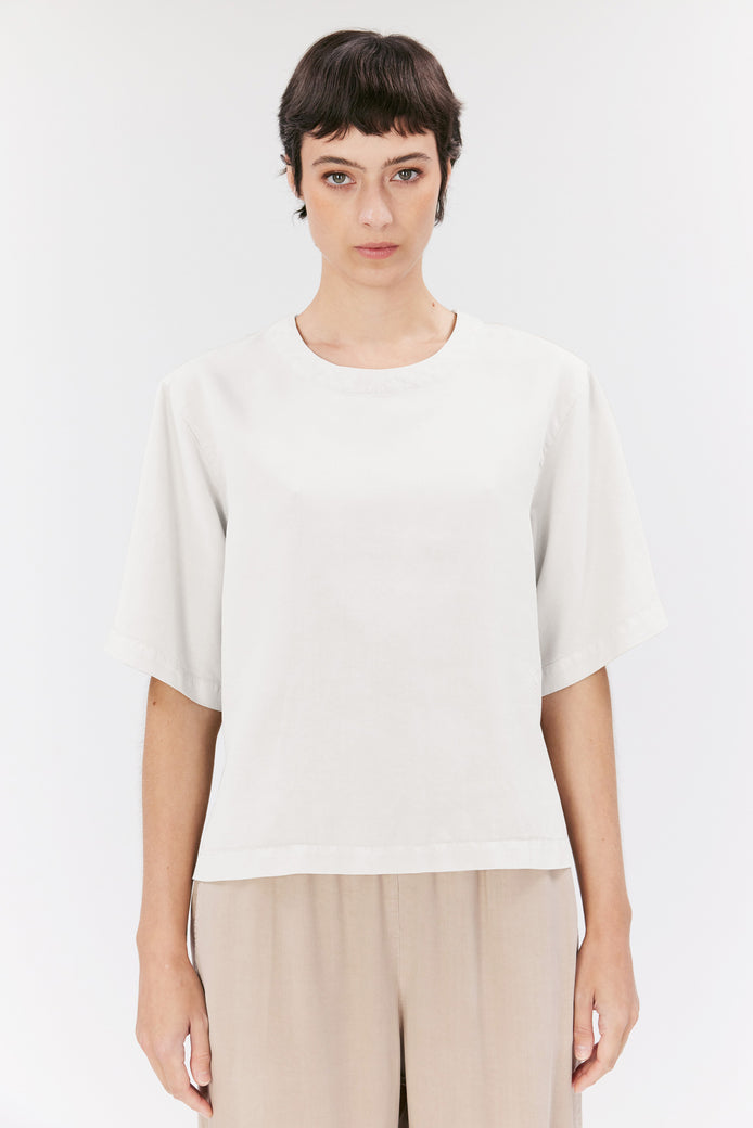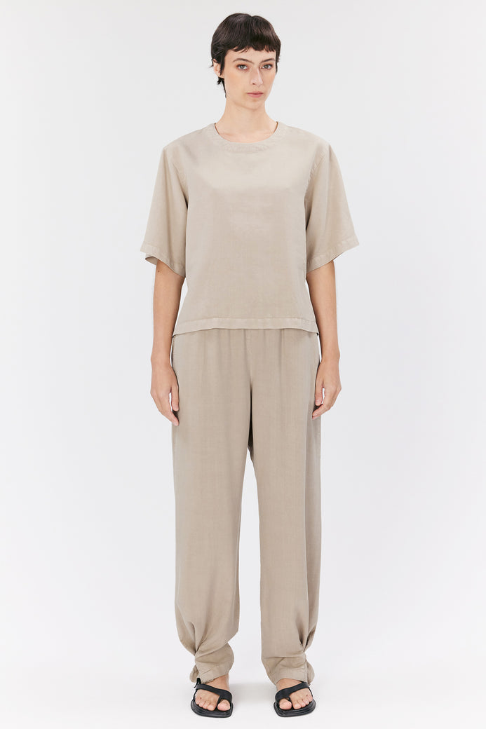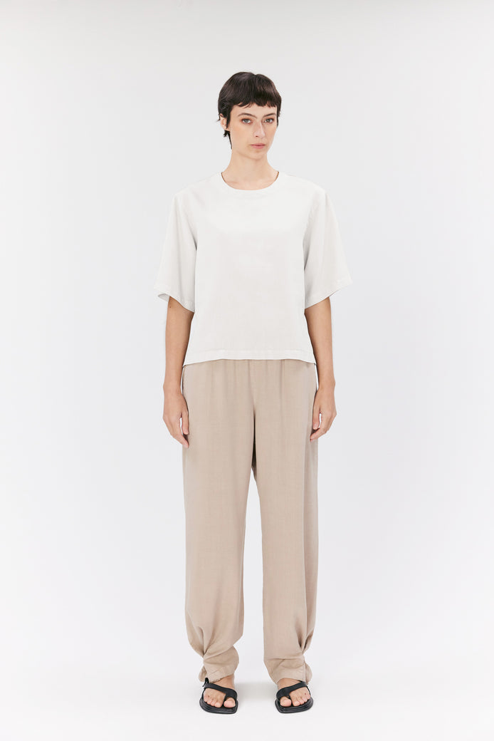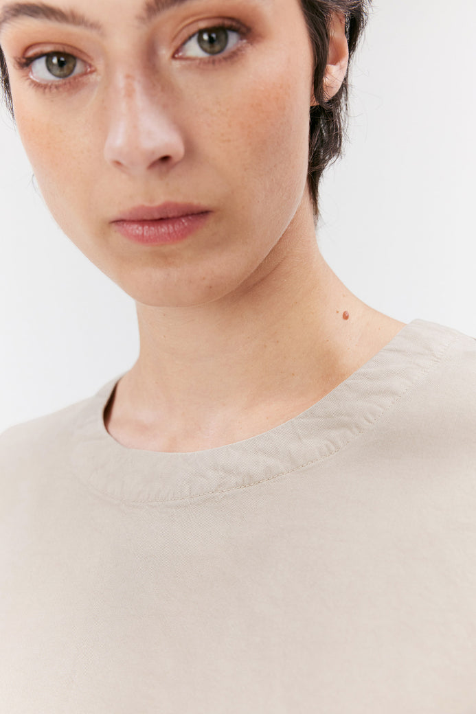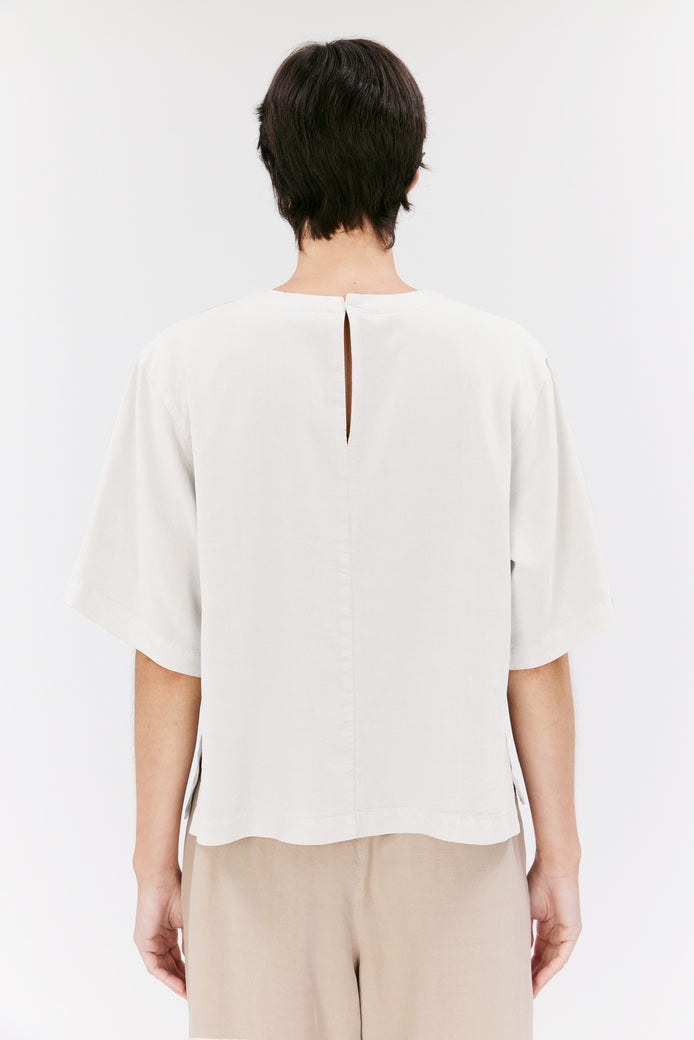 Eliana es una blusa confeccionada con tejido de lyocell teñido en prenda. El material está elaborado con fibras largas que aportan durabilidad adicional y una calidad uniforme y fina a la prenda. Los detalles incluyen aberturas en la costura lateral, cuello redondo, mangas relajadas, una abertura en forma de cerradura en la parte posterior y un bordado del símbolo EE. Utilice Eliana para paseos al atardecer que se convierten en conversaciones nocturnas.