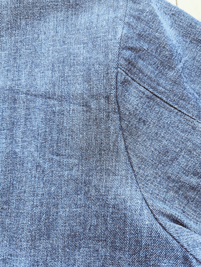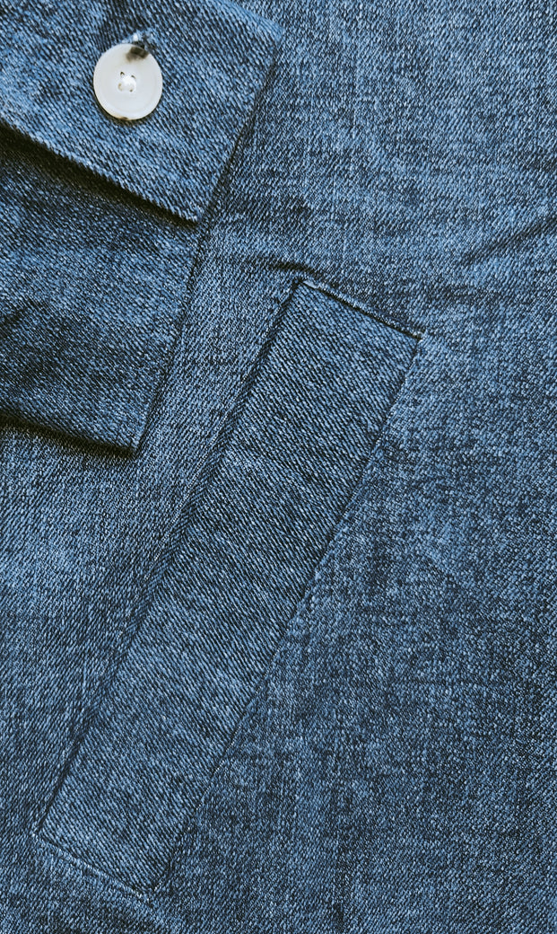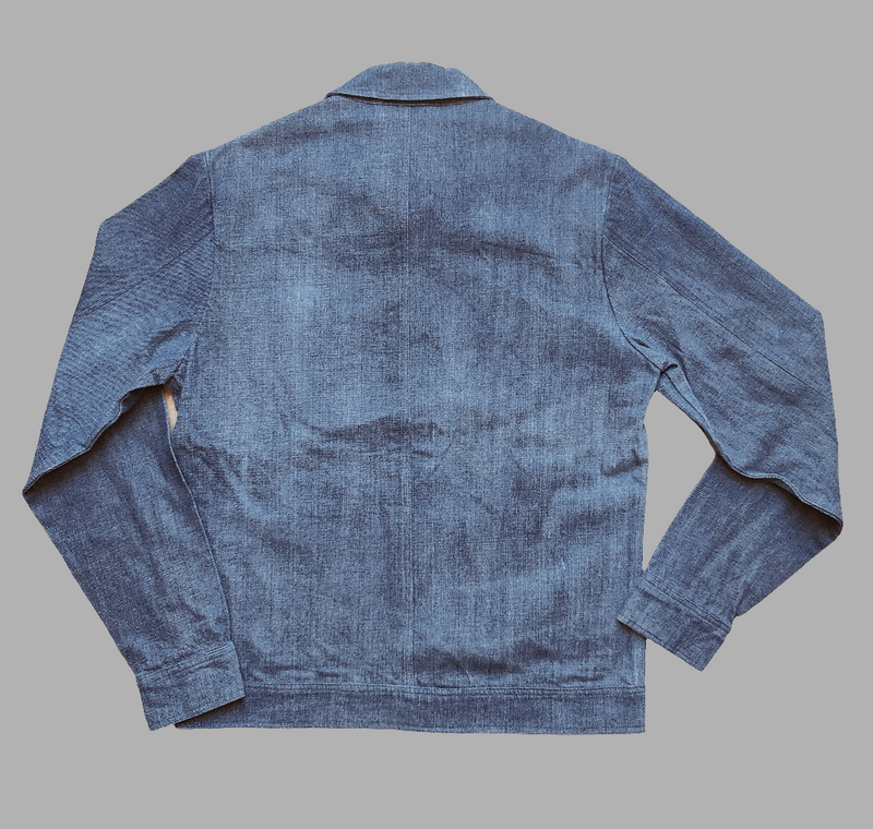 Daniel es una chaqueta corta de volumen regular para entretiempo o invierno suave. Confeccionada en denim y  fabricada a mano en España, es una pieza única exclusiva en talla Large.