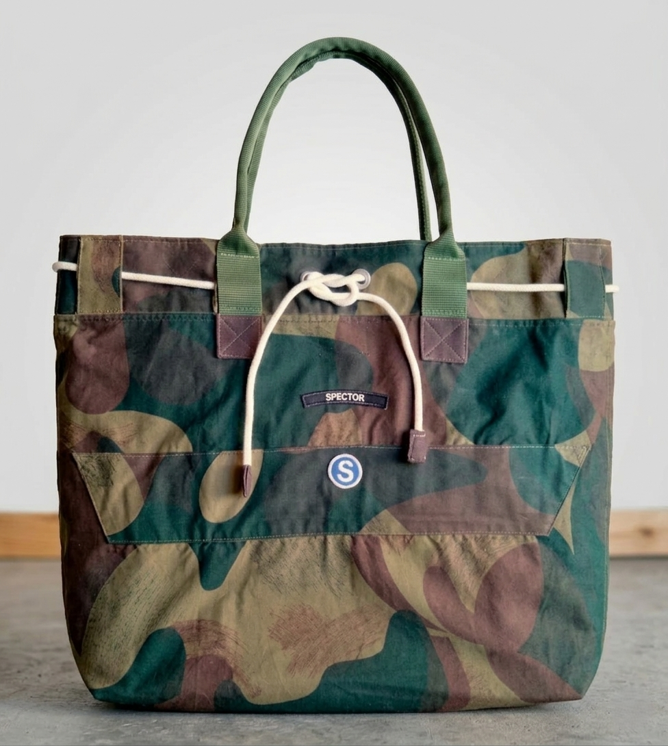 Previamente lavados, algunos de los tejidos militares de estas bolsas contienen pequeñas marcas de uso y reparaciones que les confieren carácter y personalidad.
